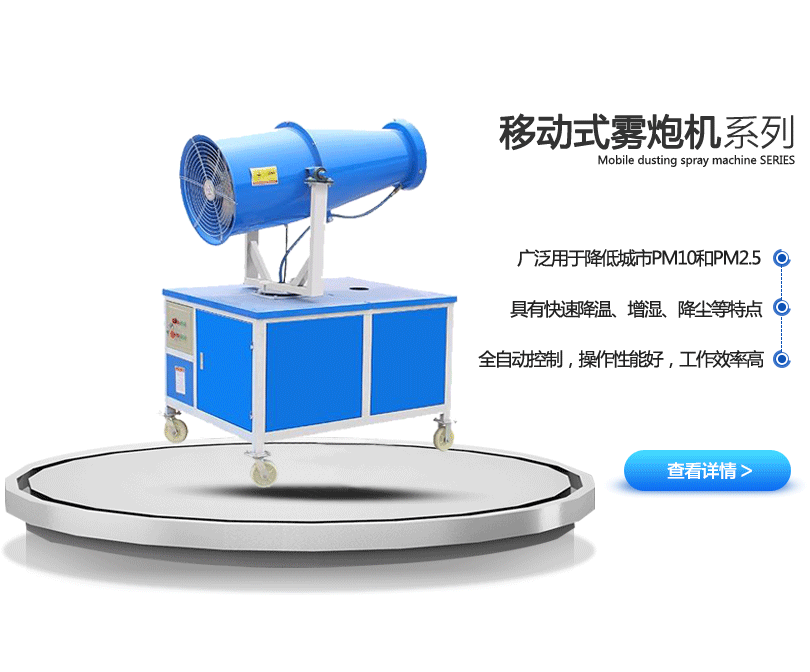 霧炮機(jī)操作靈活,使用安全可靠,遙控和人工控制操作,可隨意控制調(diào)節(jié)水平旋轉(zhuǎn)噴霧角度;耗水量相比其它抑塵噴灑設(shè)備可節(jié)約70%~...