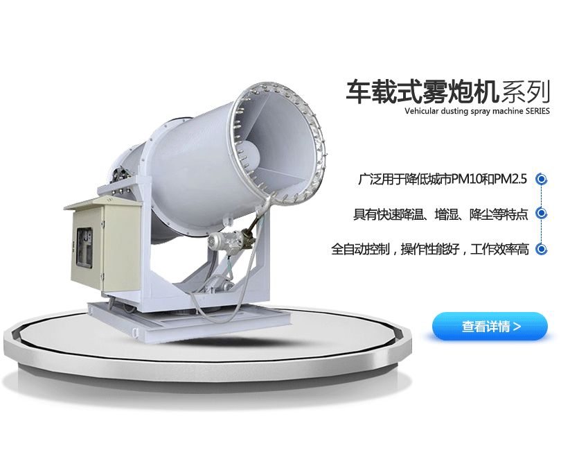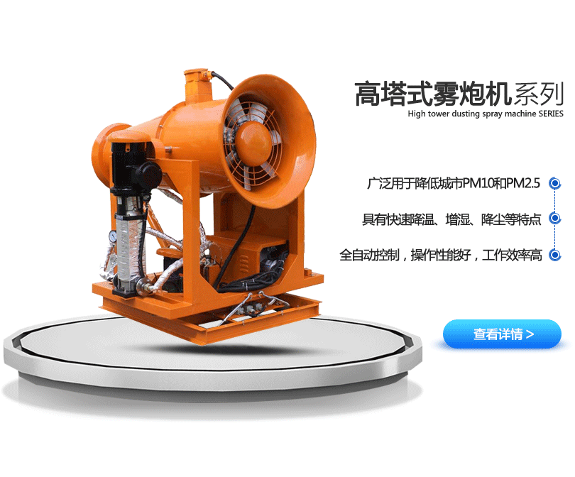 霧炮機(jī)水霧除塵是一種新穎的環(huán)保型除塵設(shè)備,是目前有效的除塵設(shè)備,在城市揚(yáng)塵治理當(dāng)中也得到了廣泛的應(yīng)用,建筑工地?fù)P塵較...